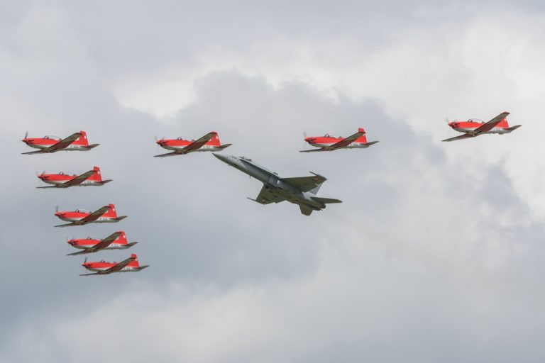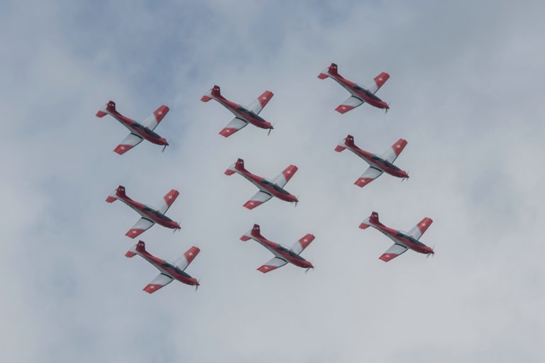 Oftmals perfekte Choreographien boten die Kunstflugstaffeln mit PC-7 und F-18, Patrouille de France, Baltic Bees und Royal Jordanian Falcons, um nur einige zu nennen.