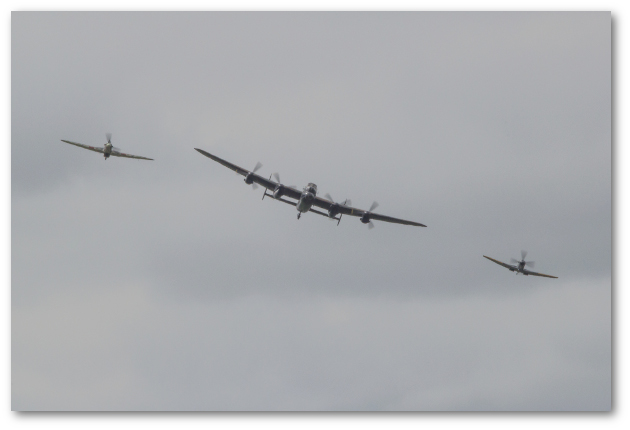Im 70. Jahr nach dem Angriff auf die Möhne-, Eder- und Sorpestaudämme schickte die Battle of Britain Memorial Flight ihre Lancaster in Formation mit einer Hurricane MkIIC und Spitfire Mk LF XVIE. Während des Displays machten diese beiden Warbirds Platz für einen Tornado GR.4 der 617th Sqn aus Lossiemoth.