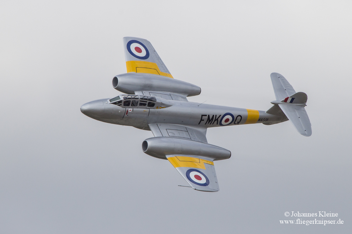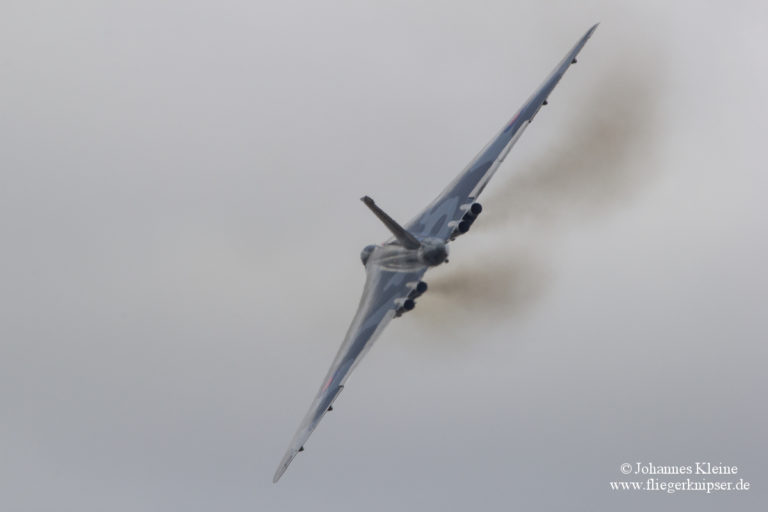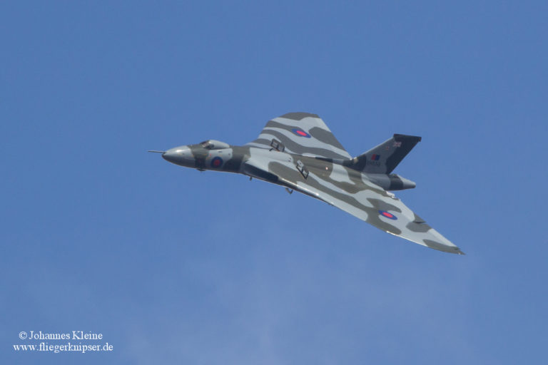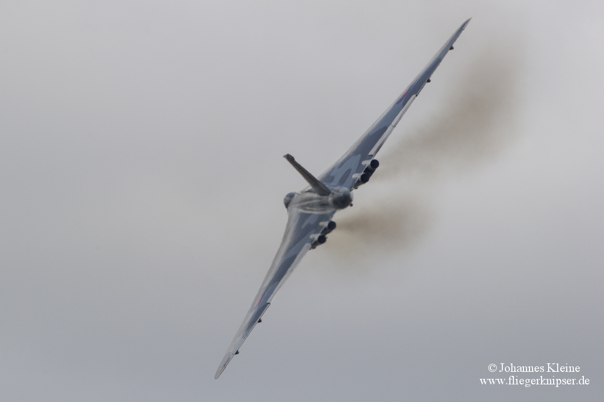 Nicht zu unterschätzen, sowohl beim Anblick als auch den Flugeigenschaften, ist die Avro Vulcan „XH 558“. Im aktiven Dienst von 1960 bis 1993 wird der Flugbetrieb dieses ehemaligen strategischen Bombers heute durch Spendengelder finanziert.