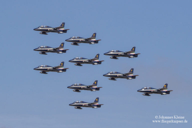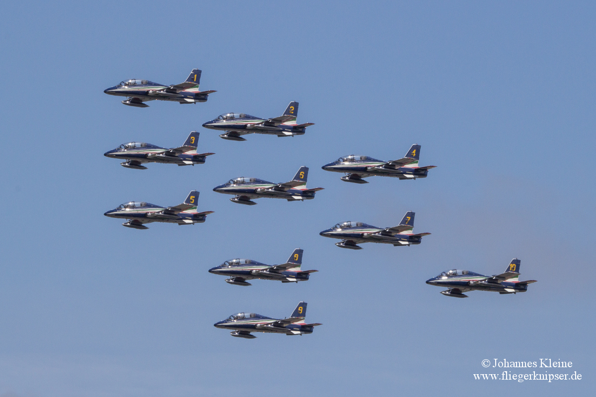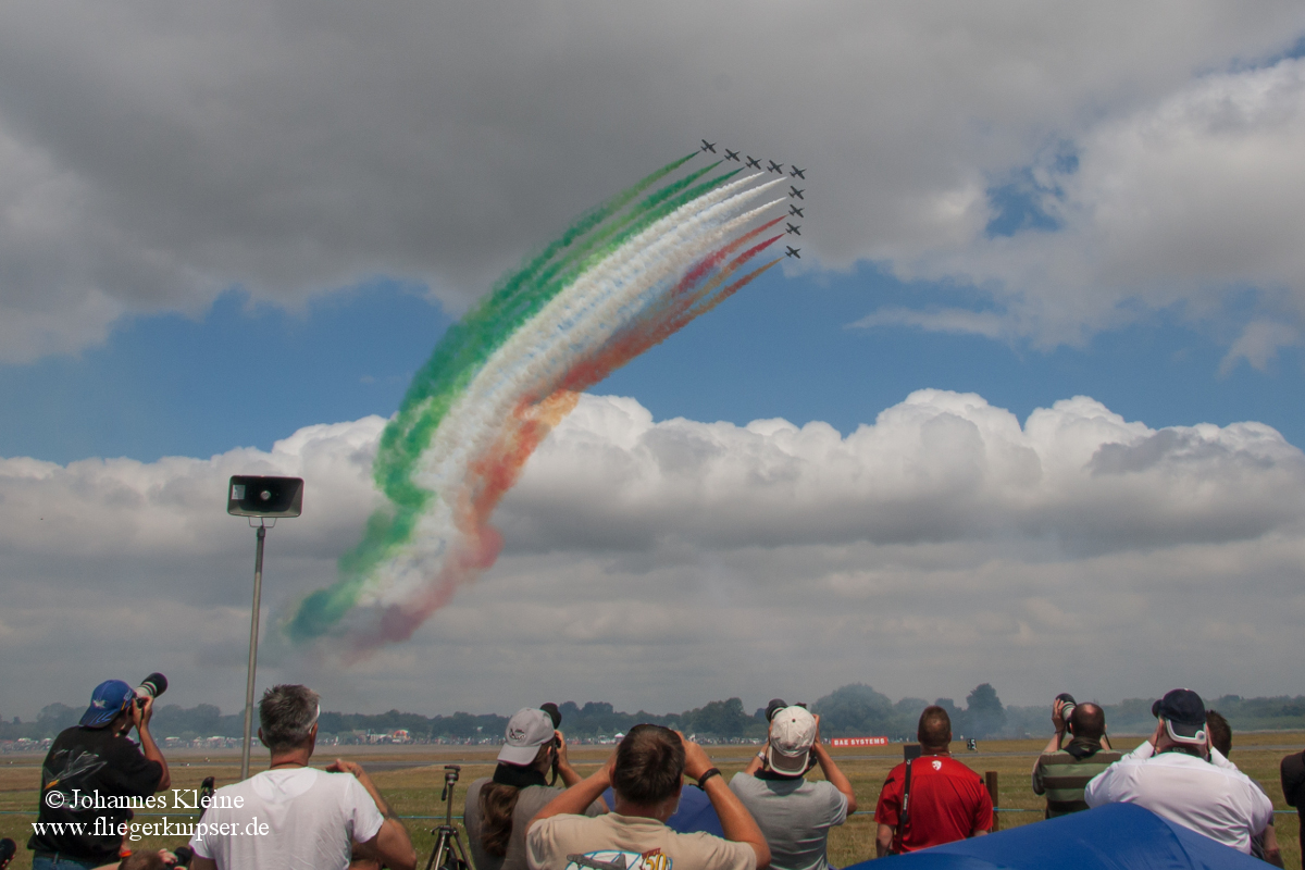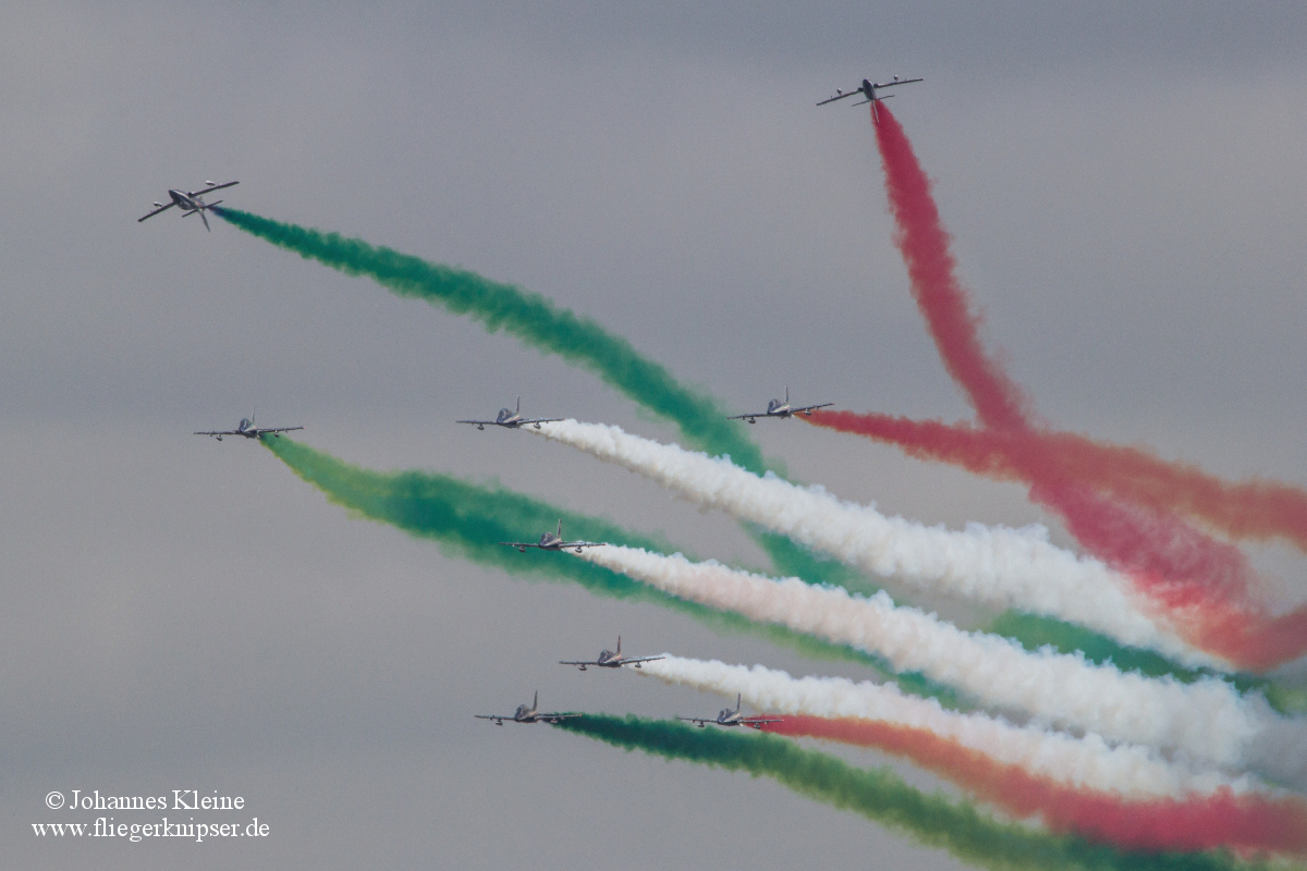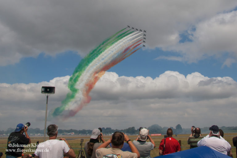 Nicht zuletzt die Teilnahme der großen bekannten Kunstflugteams Frecce Tricolori und Red Arrows erwartete ich mit Spannung – und wurde nicht enttäuscht! Es ist schon erstaunlich, mit welcher Präzision die schnellen Jets in der Formation geflogen werden, welche Figuren und Figurenwechsel gezeigt werden. Und das ganze selbstverständlich untermalt mit passender, pathetischer, Musik.