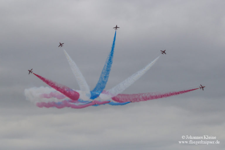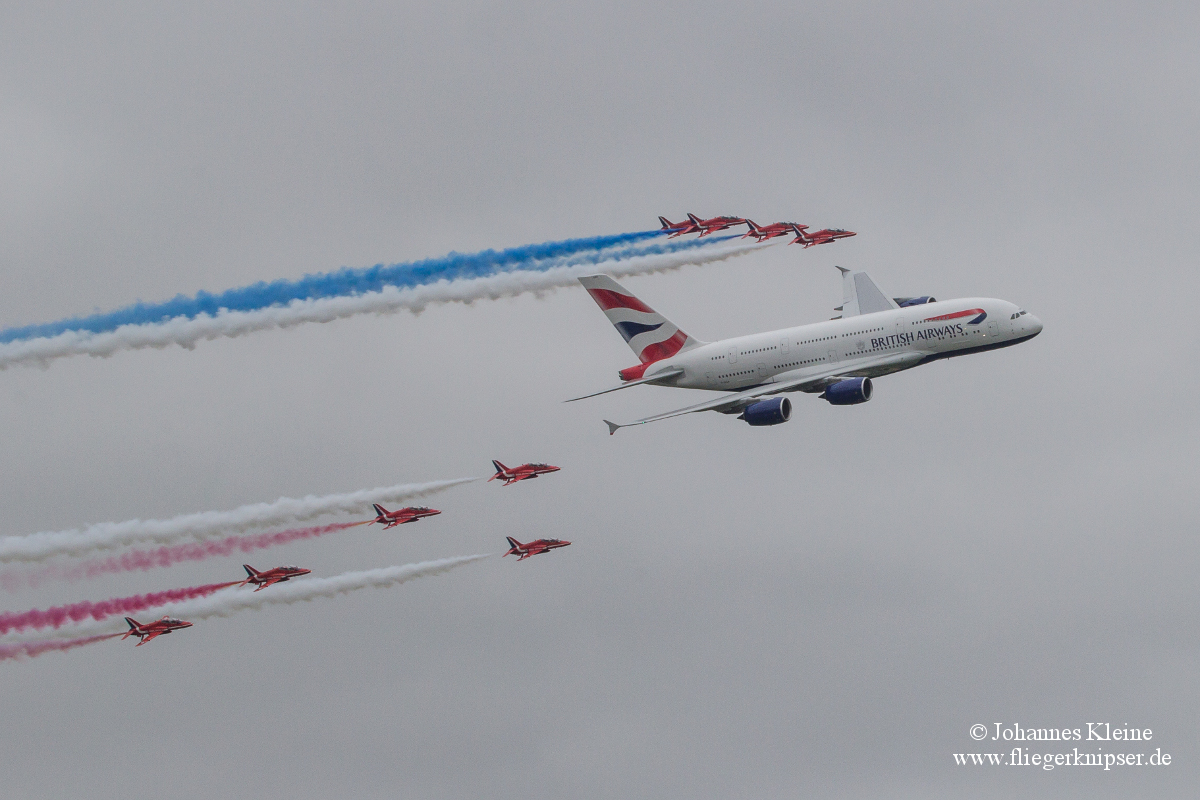 Einen starken Auftritt lieferten die Red Arrows, welche zur Eröffnung einen Airbus A380 der British Airways eskortierten.