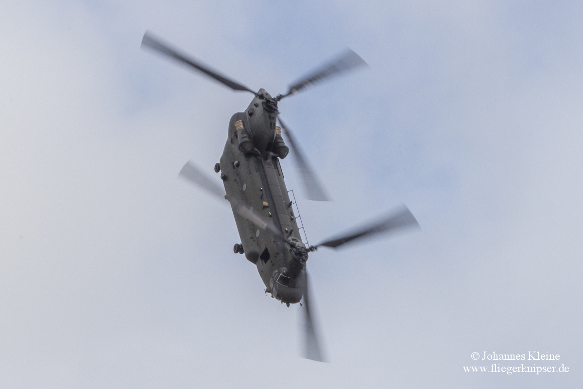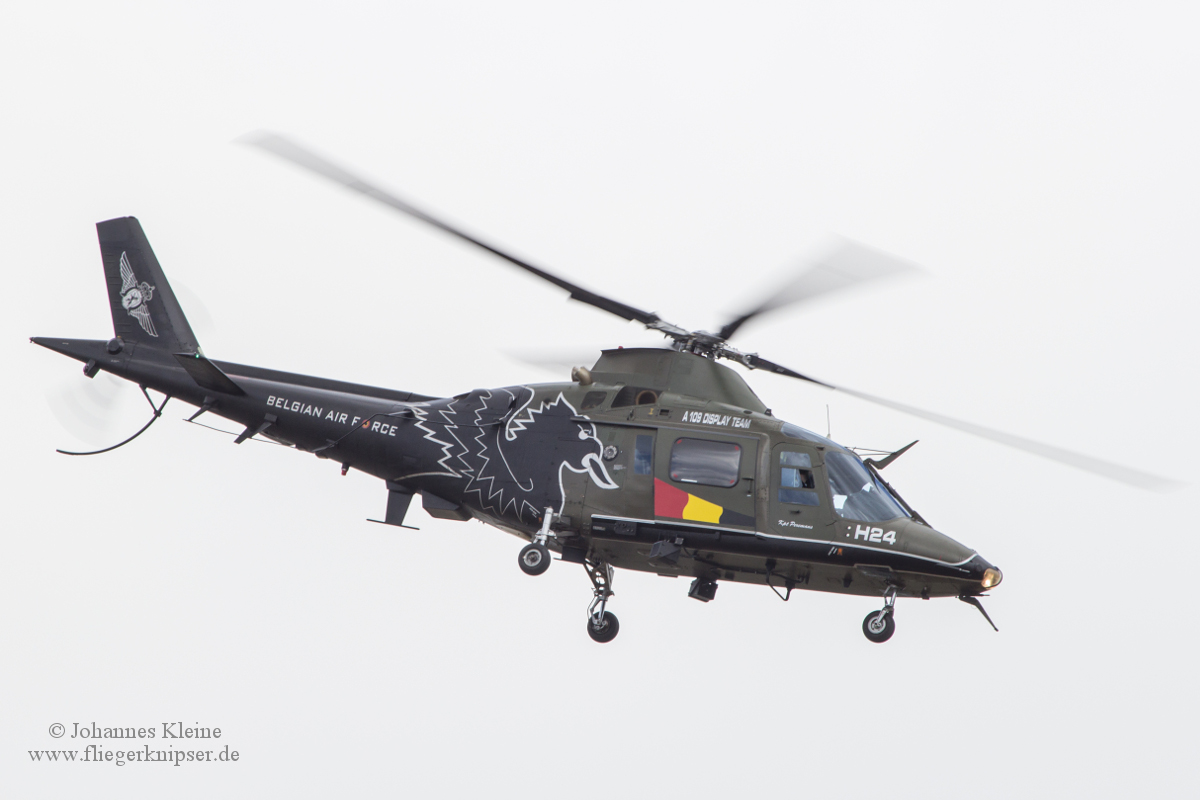 Nicht fehlen durfte auch ein Chinook Mk2 der RAF sowie ein Agusta A109 der belgischen Luftwaffe. Gerade der eher schwerfällig aussehende Chinook Hubschrauber verblüffte mit erstaunlicher Wendigkeit am Himmel.