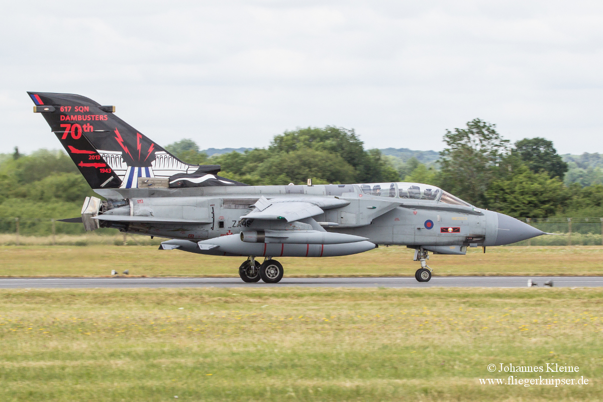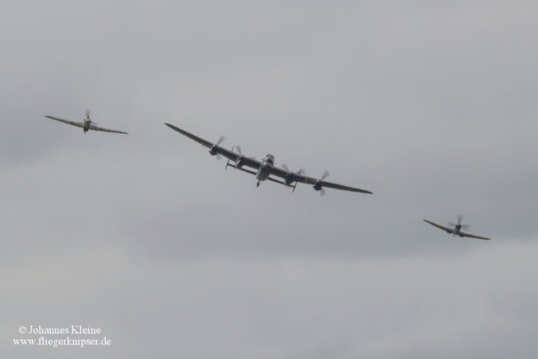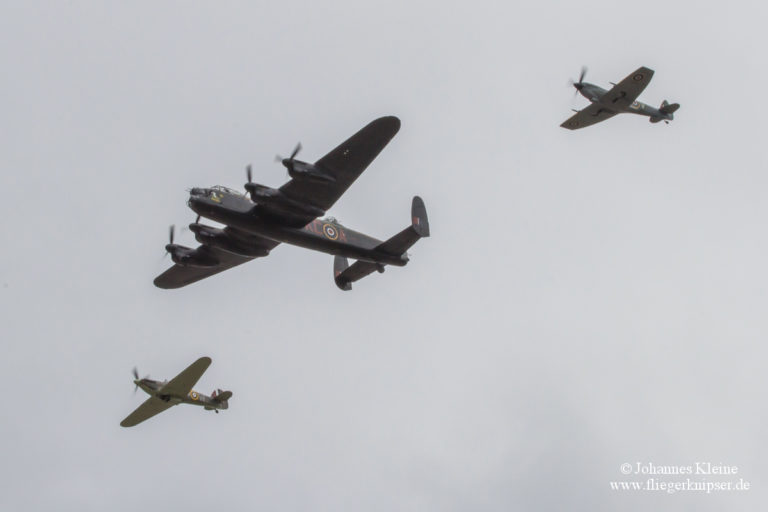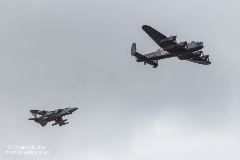 Im 70. Jahr nach dem Angriff auf die Möhne-, Eder- und Sorpestaudämme schickte die Battle of Britain Memorial Flight ihre Lancaster in Formation mit einer Hurricane MkIIC und Spitfire Mk LF XVIE. Während des Displays machten diese beiden Warbirds Platz für einen Tornado GR.4 der 617th Sqn aus Lossiemoth.