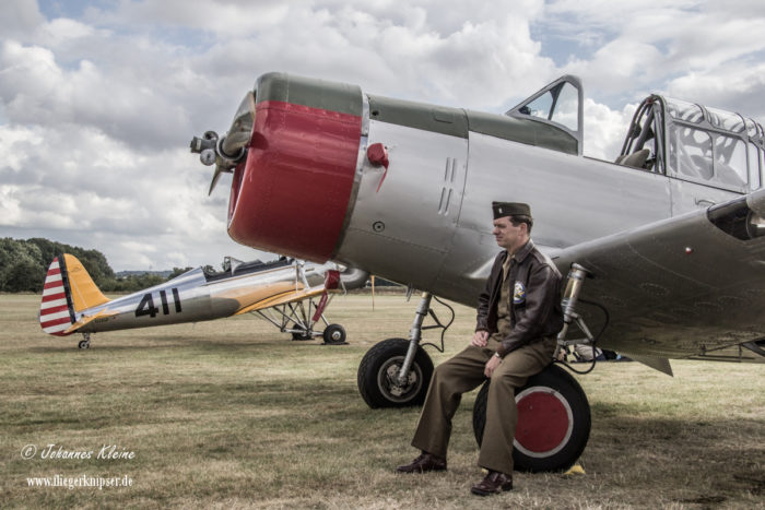Mit zu der P-51D gesellte sich ein Vertreter der Vereinigung „Lebendige Geschichte 1939 – ´49“: Ein Zusammenschluss geschichtlich interessierter Menschen, die in authentischer Kleidung die damalige Zeit wieder zum Leben erwecken.