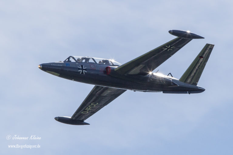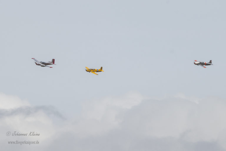 Nicht ganz alltäglich war dabei der Auftritt eines Jets am Himmel über dem Flugplatz: Die von einer privaten Haltergemeinschaft betriebene Fouga Magister D-IFCC sorgte für in Deutschland mittlerweile selten zu hörenden Jetnoise.