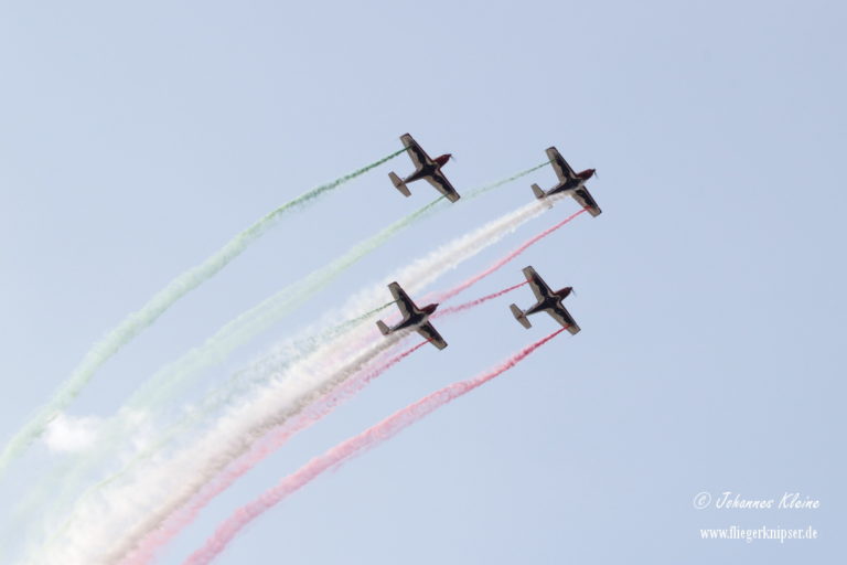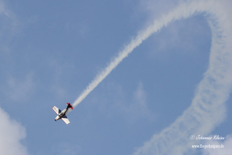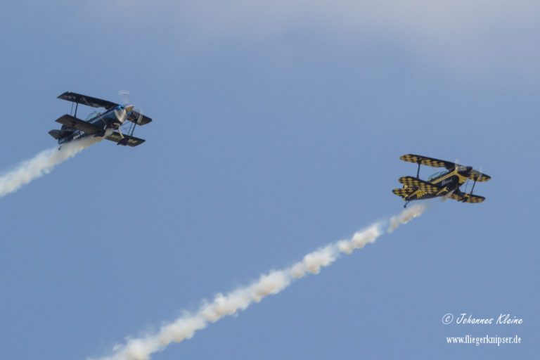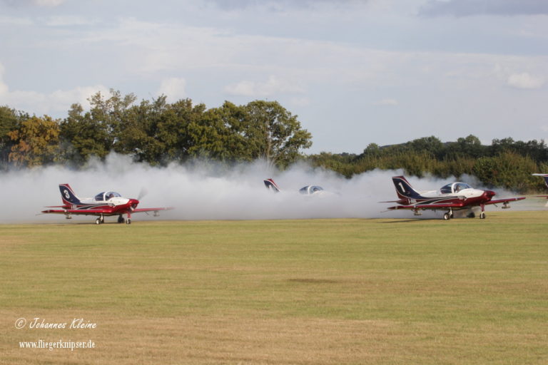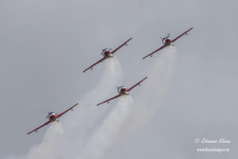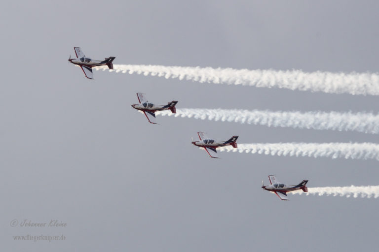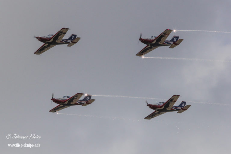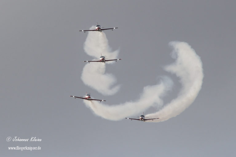 Wenn sich mehrere 10.000 Stunden Flugerfahrung am Himmel versammeln wundert es nicht, dass dabei ein verblüffendes und packendes Display heraus kommt. Untermalt mit passender Musik und ausgestattet mit Rauch zog das Team die Besucher in seinen Bann. Wie sich der augenscheinlich spielerisch leichte Formationsflug mit dem Blick aus dem Cockpit anfühlt wird hier in Kürze zu lesen sein.
