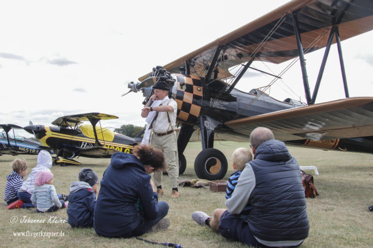 Hans Nordsiek aus den Niederlanden, bekannt als „The Storyteller“, unterhielt nicht nur mt seiner Boeing Stearman, sondern auch mit seiner lustigen Show am Boden Jung und Alt.