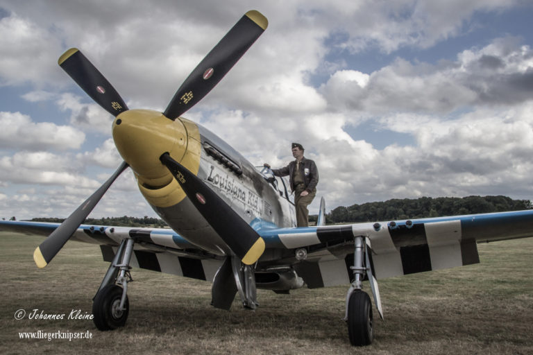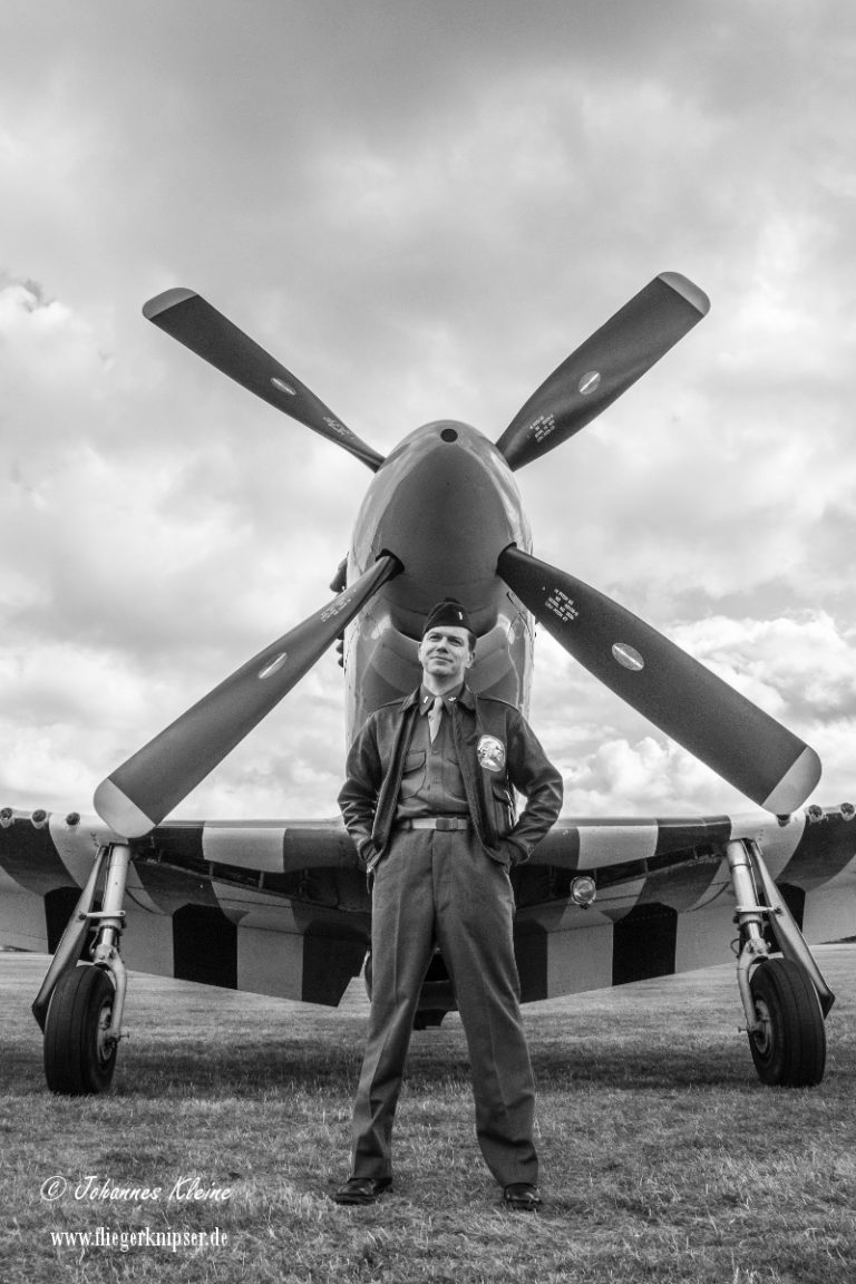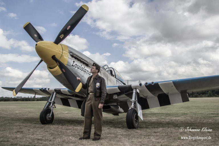 Mit zu der P-51D gesellte sich ein Vertreter der Vereinigung „Lebendige Geschichte 1939 – ´49“: Ein Zusammenschluss geschichtlich interessierter Menschen, die in authentischer Kleidung die damalige Zeit wieder zum Leben erwecken.