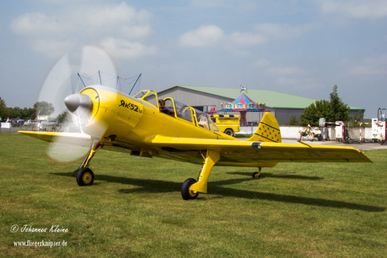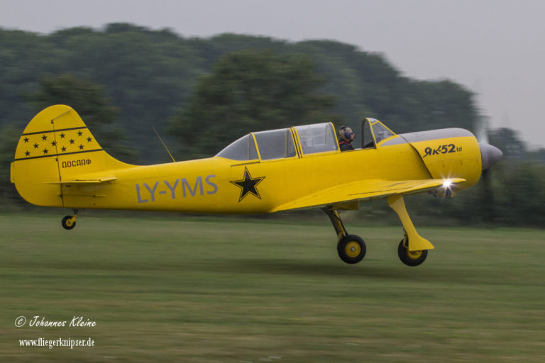 Matthias Meyers ließ es sich ebenfalls nicht nehmen, mit einer Yak-52TD zu zeigen, welche Rollrate das Flugzeug um die Längsachse bietet. Leider hinderte ihn die niedrige Wolkendecke an seinem vollen Programm.