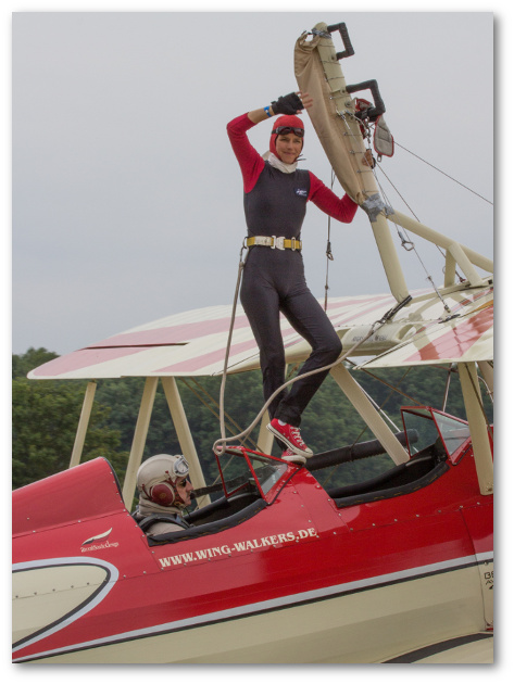 Mit der Saison 2015 verabschiedete sich Peggy auch bei ihren Fans. Peggy, selbst Fluglehrerin, hat sich stets um fliegerischen Nachwuchs gekümmert und für die Faszination des Fliegens geworben. Aber nach über 800 akrobatischen Einlagen hoch oben auf den Tragflächen seit 1998 ist nun das Ende der Auftritte beschlossene Sache.