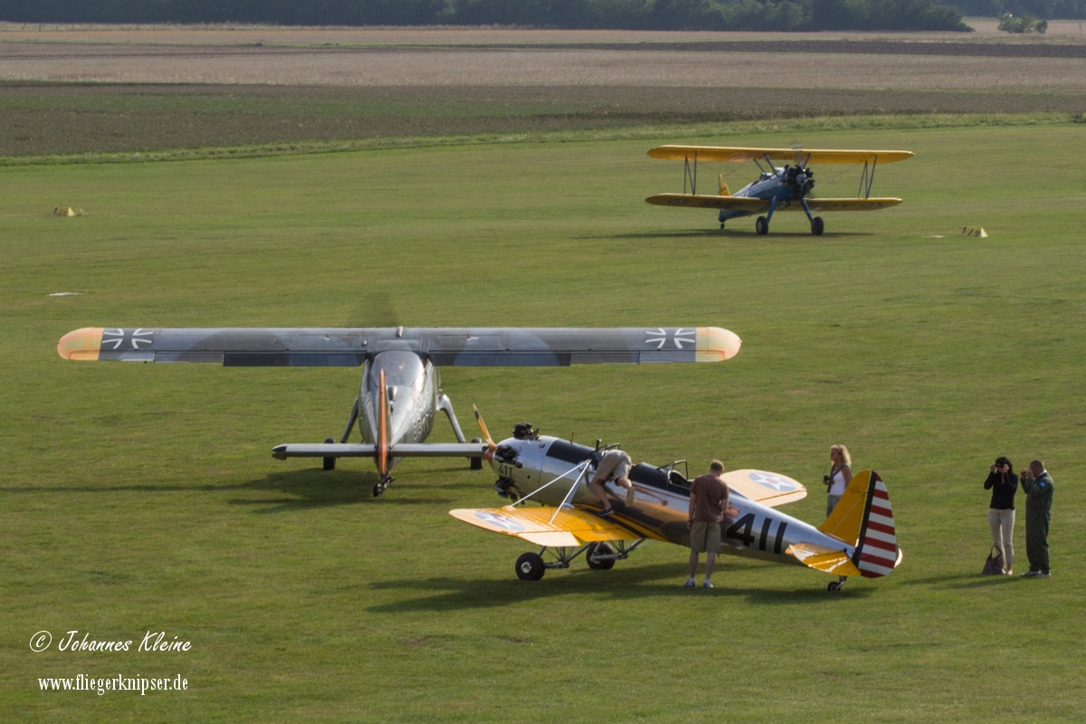 Aber auch eine kleine Airshow zur Eröffnung ließ die Besucher am Abend bereits gebannt in den Himmel schauen. Das Acroteam aus Meschede mit 2 Pitts, Christoph Zahn mit seinem Habicht Segelflugzeug, Julian Hilbig im Fox Segelkunstflugzeug, Dornier Do 27 aus Bad Gandersheim und die Ryan PT-22 vom Flugplatz Aachen-Merzbrück sorgten für einen stimmigen Auftakt bei (noch) tollem Sommerwetter.