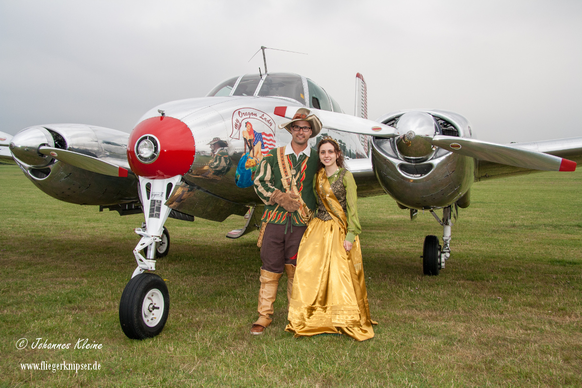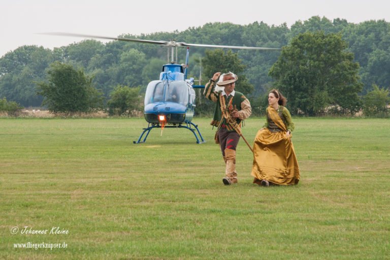 Den ganzen Tag über starteten und landeten in den Programmpausen weitere Fly In Besucher, wobei auch die Rundflugpiloten kräftig zu tun hatten. Mit dem „Jägerken von Soest“ Jens Hüttenschmidt in Begleitung der Börde Königin Jale-Katalin Heitbreder wurde dann auch noch prominenter Besuch standesgemäß eingeflogen.