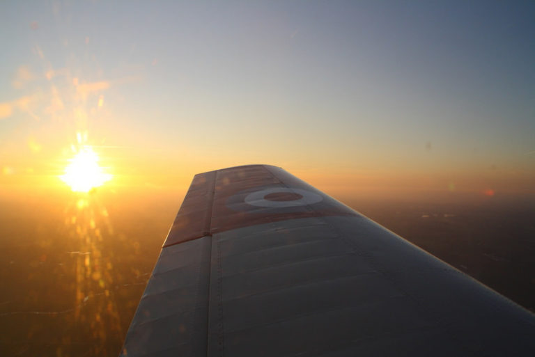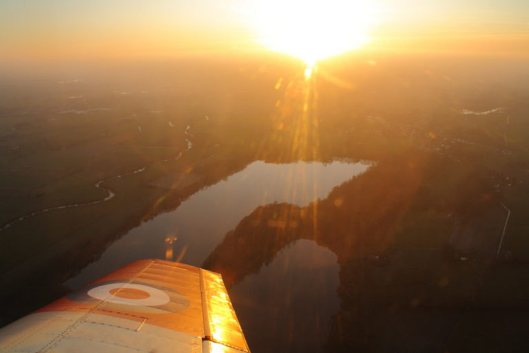 Das abendliche Licht sorgte bei unserem Flug für eine ganz besondere Stimmung. Die Welt schien in Gold getaucht zu sein, Wasserflächen glitzerten samten in den Himmel, die untergehende Sonne strahlte eine beruhigende Farbe aus.